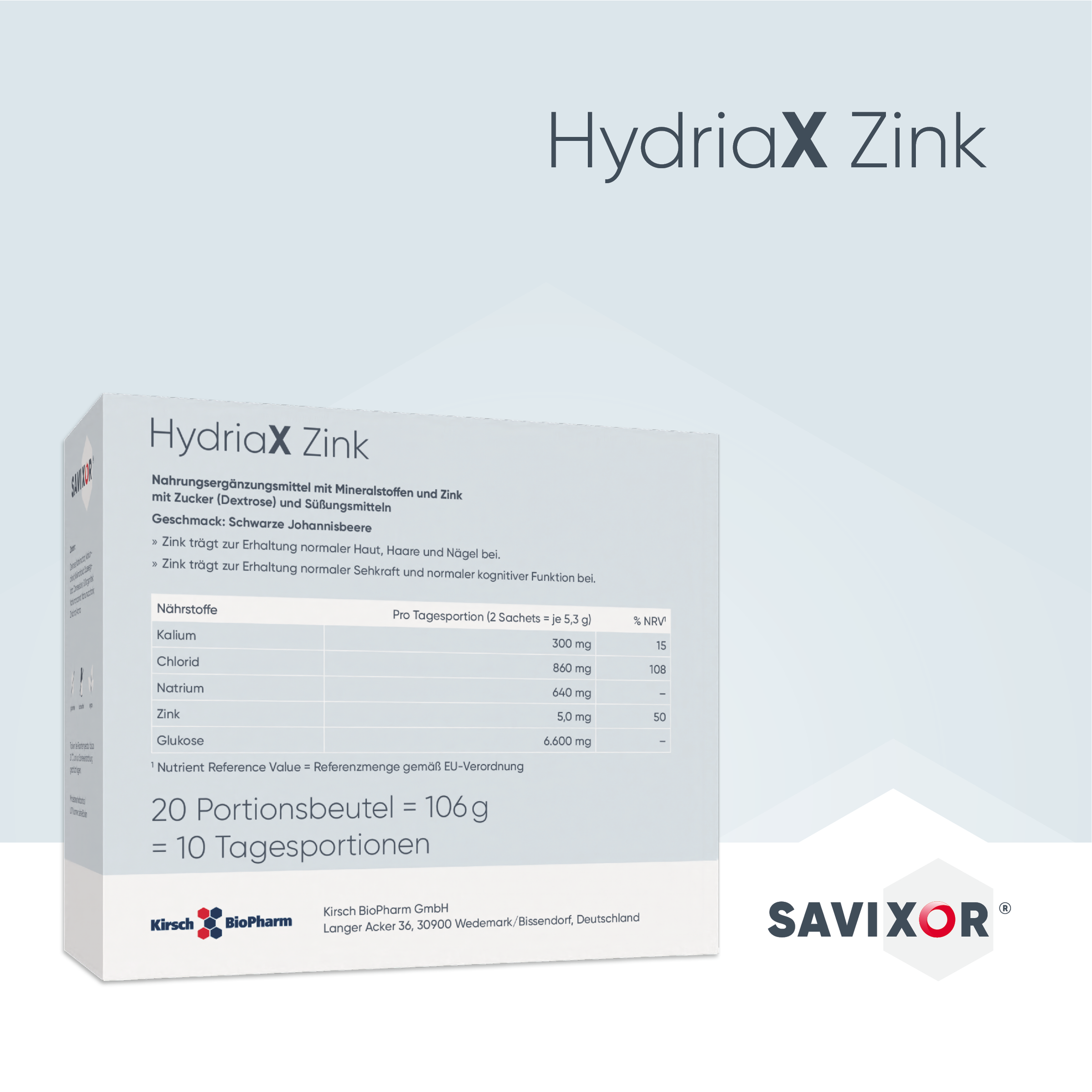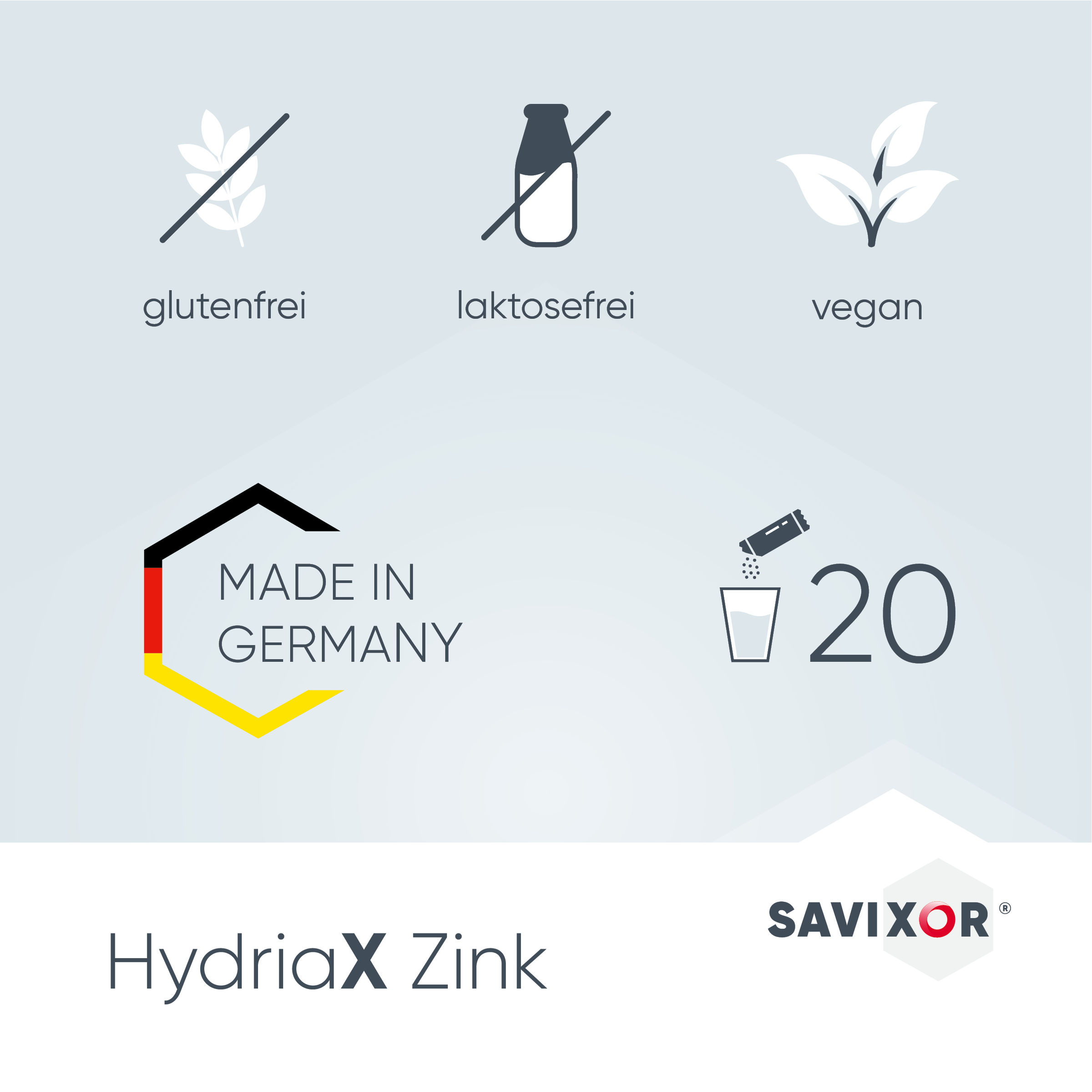 Unser Nahrungsergänzungsmittel HydriaX Zink enthält eine sorgfältig abgestimmte Kombination aus Dextrose, Natriumcitrat, Natriumchlorid, Kaliumchlorid sowie dem Spurenelement Zink. In Trinkwasser gelöst handelt es sich bei HydriaX Zink um ein fruchtiges Getränk.