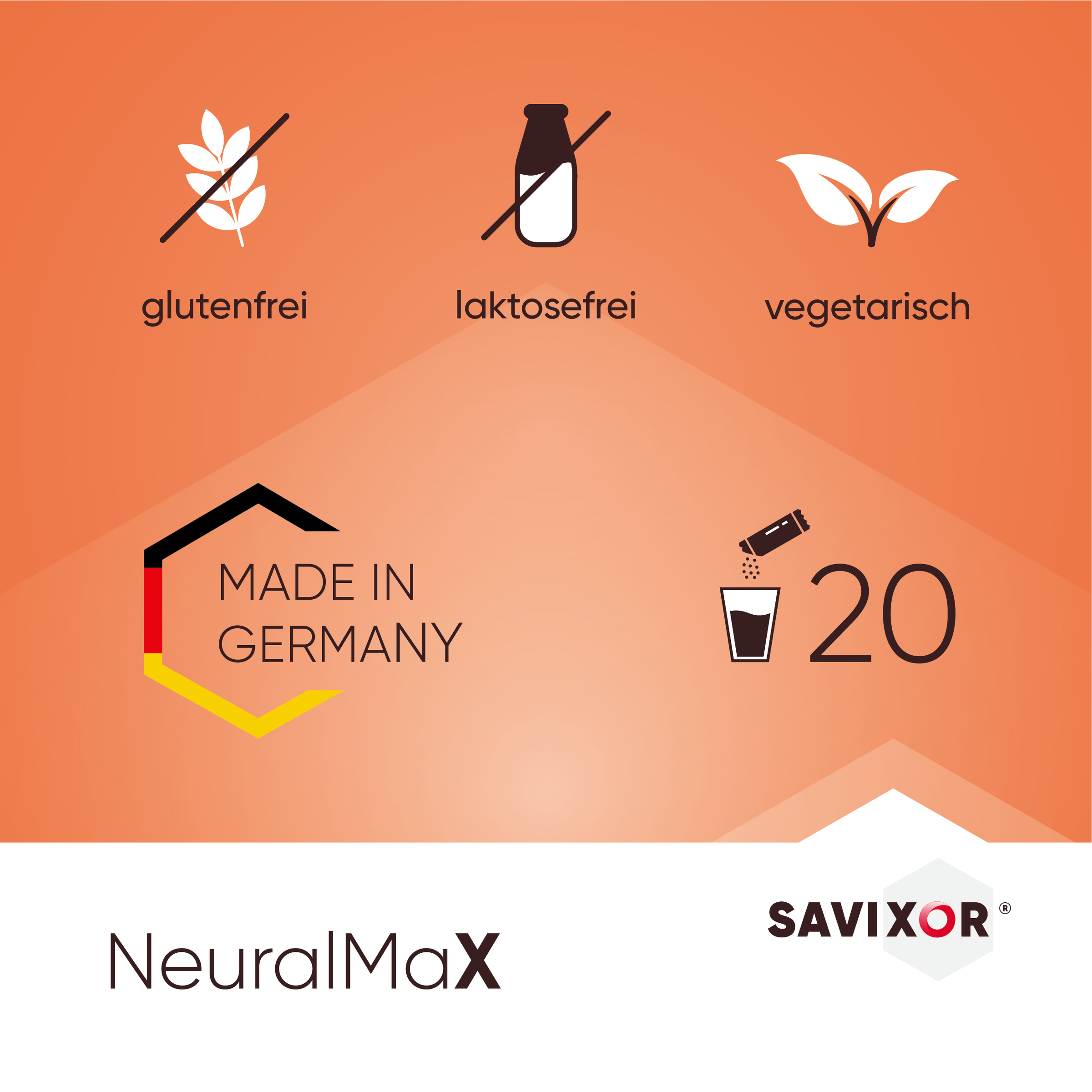 Das Produkt NeuralMax enthält keine Allergene (gemäß Verordnung (EU) Nr. 1169/2011), keine GVO, ist gluten- sowie laktosefrei und für Vegetarier geeignet.