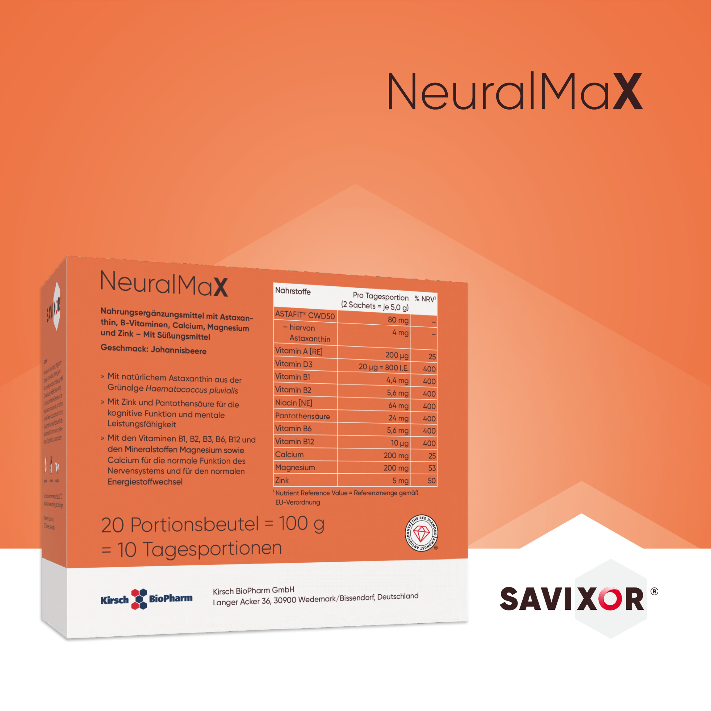 NeuralMaX ist ein hochwertiges Nahrungsergänzungsmittel, das eine ausgewogene Mischung aus Astaxanthin, Vitaminen und Mineralstoffen bietet. Es wurde speziell mit Zink entwickelt, um die normale kognitive Funktion in jedem Alter zu fördern.